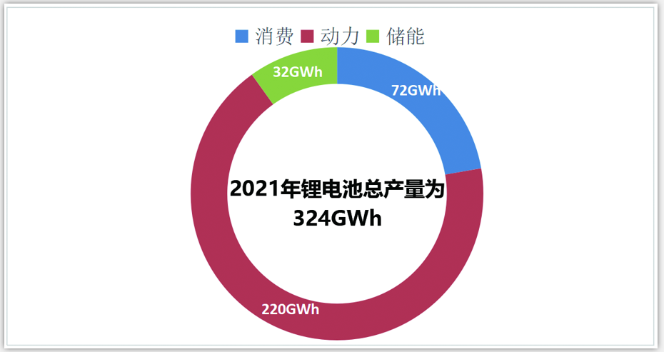 新能源汽車的快速增長帶動動力電池的持續增長。2021年消費、動力、儲能型鋰電產量分別為72GWh、220GWh、32GWh,分別同比增長18%、165%、146%,占比分別22.22%,67.9%,9.88%,動力電池的占比最大且增長最快。動力電池中又以磷酸鐵鋰電池占比高,2021年磷酸鐵鋰電池產量累計125.4GWh,占總產量57.1%,同比累計增長262.9%。
