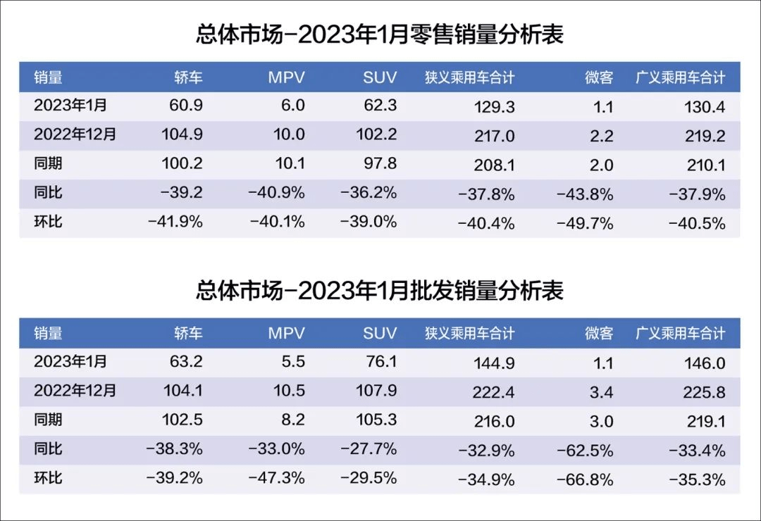 2023年伊始,汽車人就挨了當頭一悶棍,1月份的戰報前所未有地慘烈,乘用車零售129.3萬輛,同比下降37.9%,降幅創下本世紀以來最高記錄。料到了1月車市不會多熱鬧,沒想到冷清如斯,自然而然地,提振汽車消費、帶動后疫情時代國民經濟增長這一話題被擺到了臺面上。