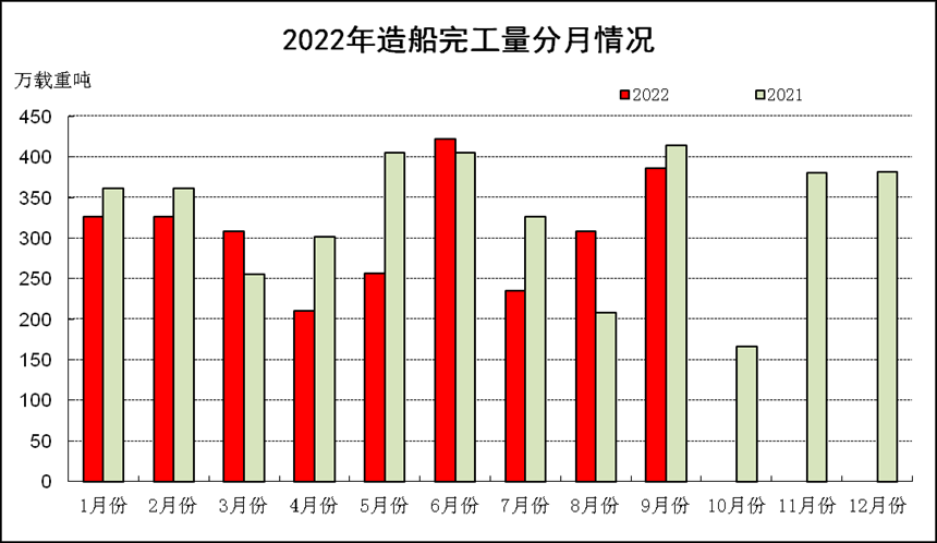 截至9月底,手持船舶訂單量10256萬載重噸,同比增長11.0%,其中海船為4317萬修正總噸,出口船舶占總量的89.1%。